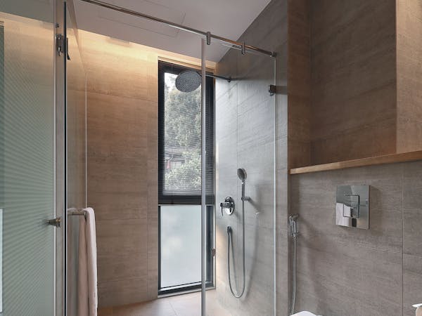● バスルームと洗面所に仕切りがないためシャワーカーテンで仕切る形になります。